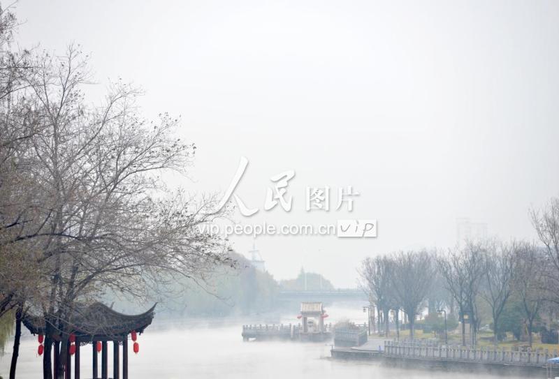 2018年12月11日,江蘇淮安,里運河清江浦景區在煙雨中格外清秀。當日,淮安市區出現小雨天氣, 里運河上飄起陣陣煙氣,兩岸的建筑忽隱忽現,如夢幻一般。