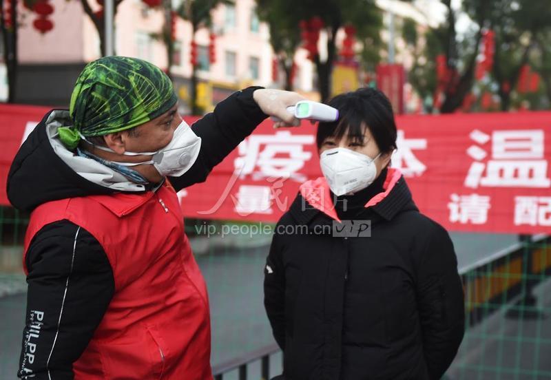 2月5日,伊朗客商哈米對(duì)進(jìn)入雞鳴山社區(qū)的人員測(cè)體溫。