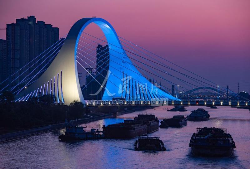 2020年4月27日,江蘇省淮安市,運(yùn)輸船舶在京杭大運(yùn)河上航行。