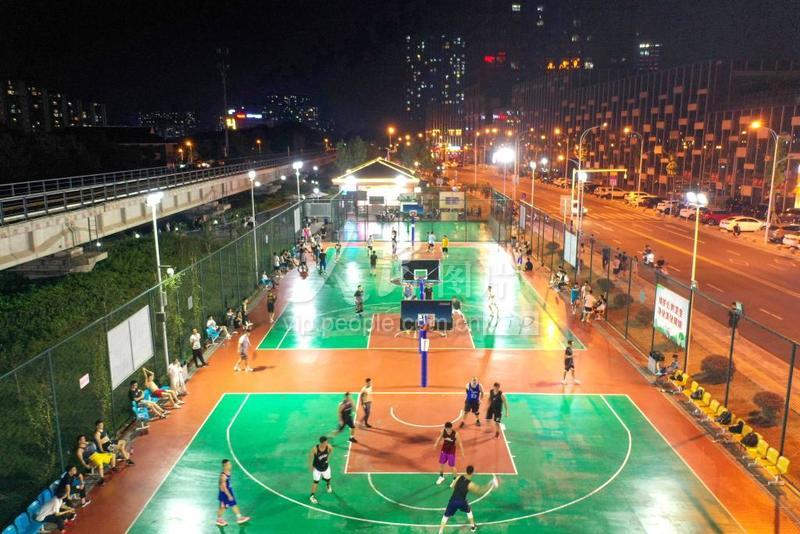 2021年8月6日晚,市民在安徽省銅陵市銅官區北斗星城體育公園籃球場打籃球。
