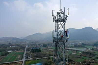2021年12月13日,安徽移動銅陵分公司網絡維護人員在安徽省銅陵市義安區天門鎮五峰村基站進行5G基站天線現場調測。
