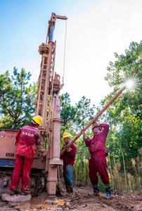 2022年8月15日,江西省吉安市吉水縣八都鎮東坊村抗旱井施工現場,施工人員正在進行打井作業。