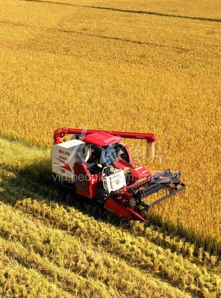 2022年11月7日,地處長江南岸的安徽銅陵市銅官區西湖鎮田地里晚稻已經成熟,廣大農民正在抓住當前晴好天氣,搶收晚稻,顆粒歸倉。