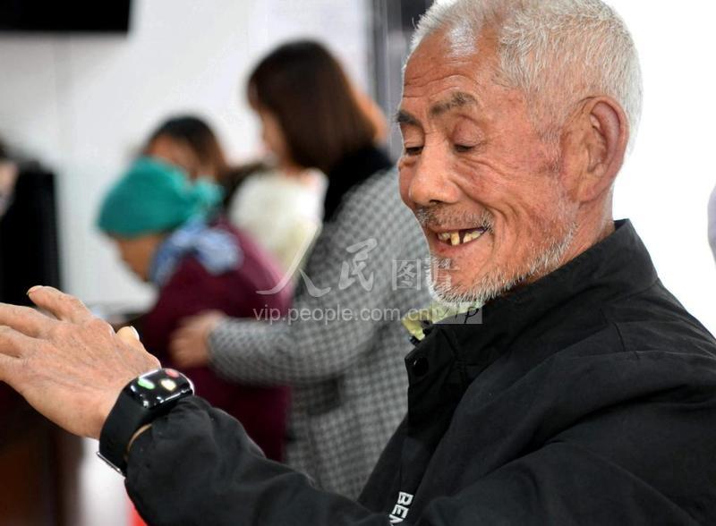 圖片說明: 2023年2月28日,在安徽省銅陵市義安區老洲鄉成德村,老人領取到了智能“愛心手環”。