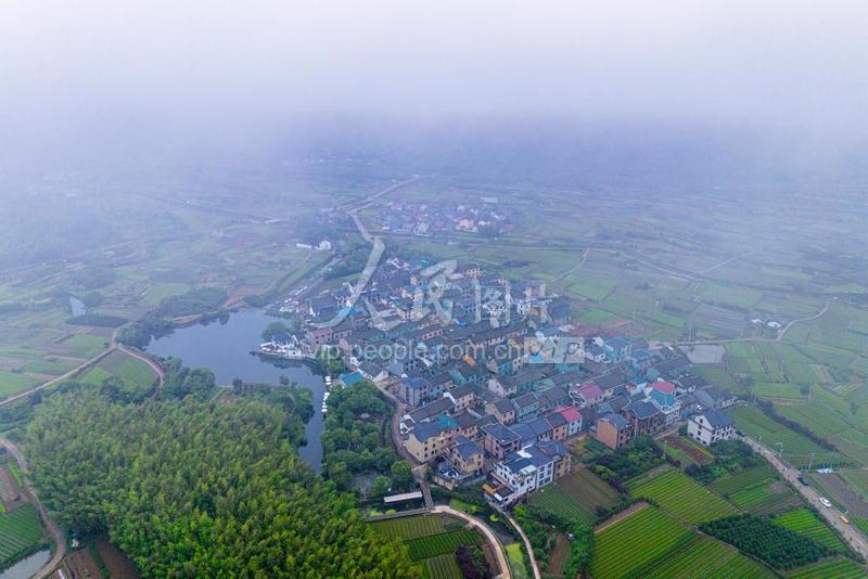 2023年6月8日,浙江省寧波市北侖區春曉街道雙獅村,陣雨過后,云霧繚繞,綠意盎然,山林、民房、田園相映成景,組成了一幅村美人和共富的鄉村振興畫卷。 得益于浙江省“千萬工程”實施,雙獅村從一個貧困小山村,華麗轉身,變成了一個生態特色鮮明、村容村貌整潔、增收渠道順暢、鄉村文化繁榮的美麗鄉村。在著力推進美麗鄉村建設的同時,因地制宜發展鄉村旅游,努力實現村民富、生態美的統一,助力鄉村振興。