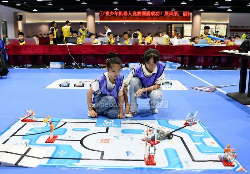 2023年7月15日,參賽選手在安徽省銅陵市青少年機器人競賽中開展技能大比拼。