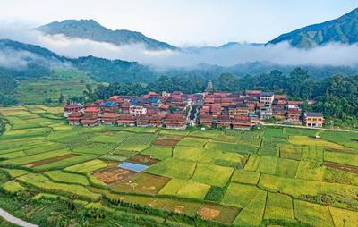 初秋時節,廣西柳州市融水苗族自治縣大苗山區種植的12萬多畝中稻陸續進入成熟期,豐收在望的稻田與大山、農舍、村道相映成趣美不勝收。