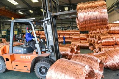 2024年1月9日,工人在安徽銅陵有色金屬集團股份有限公司銅冠銅材公司車間里生產高導銅材。