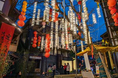 2024年1月22日晚,重慶磁器口古鎮(zhèn),迎春燈飾吸引游客游覽。近日,千年古鎮(zhèn)磁器口主題迎春燈飾點(diǎn)亮。古鎮(zhèn)變得流光溢彩,年味十足,為廣大市民和游客展現(xiàn)了千年古鎮(zhèn)新氣象,吸引不少市民游客前來,感受濃濃年味。