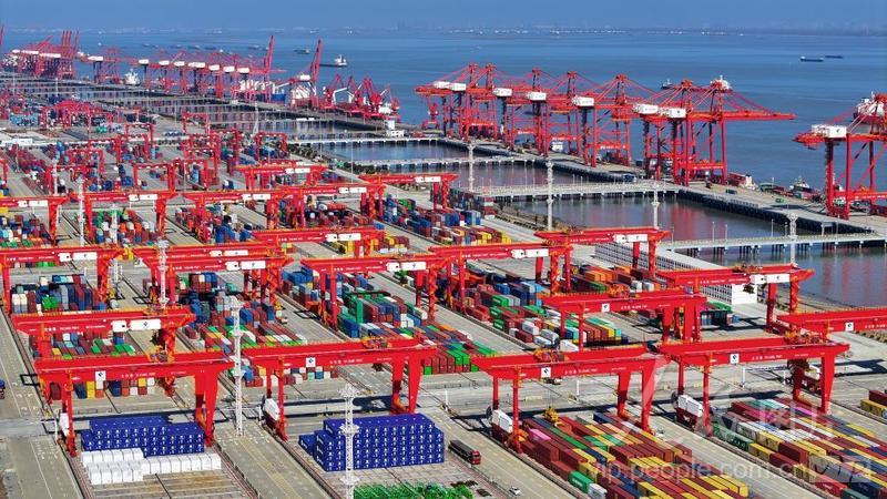 2024年2月16日,江蘇省蘇州港太倉港區(qū),集裝箱吞吐作業(yè)繁忙有序。